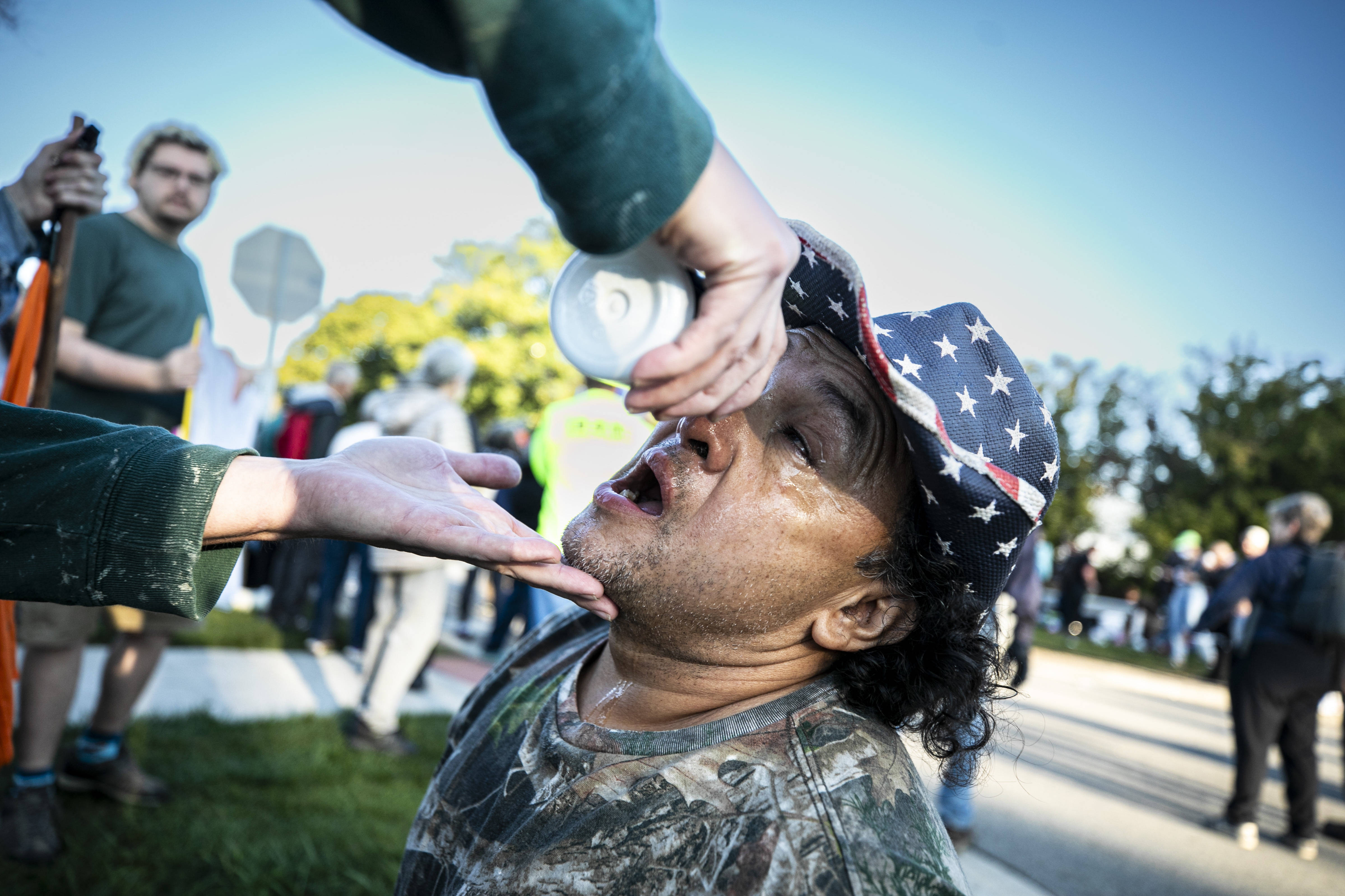 在芝加哥附近一处移民与海关执法局设施外,抗议者频频聚集,3日有13人被捕。